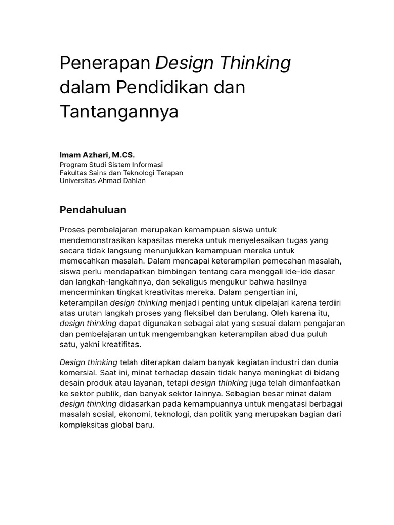 Tantangan dan Peluang Penerapan Design Thinking dalam Pendidikan